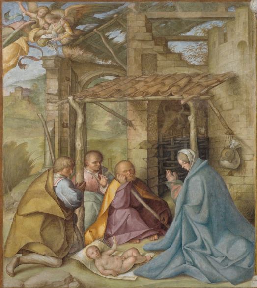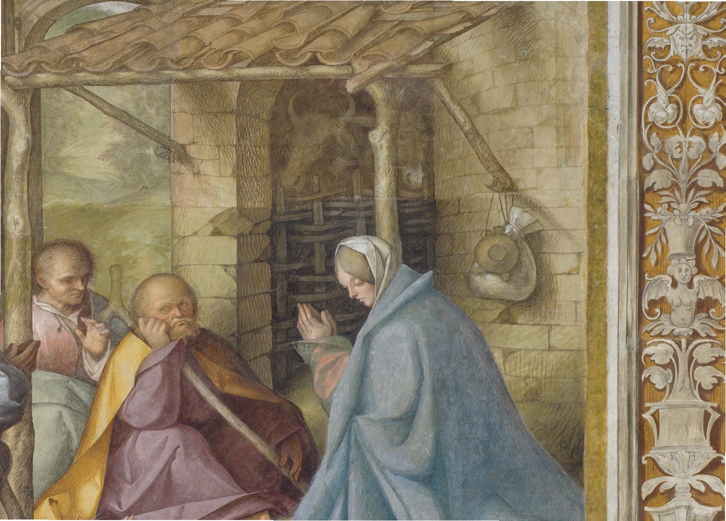 Nell’Adorazione dei Pastori affrescata da Boccaccio Boccaccino nella Cattedrale di Cremona tutto trasmette un senso di povertà e precarietà.